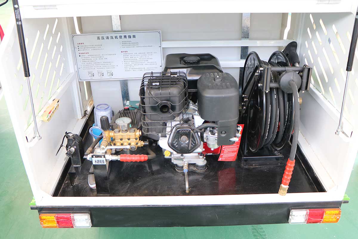 7 | 本車沖洗機為汽油動機泵組,單缸四沖程汽油機,強勁有力最大沖洗壓力240bar; |