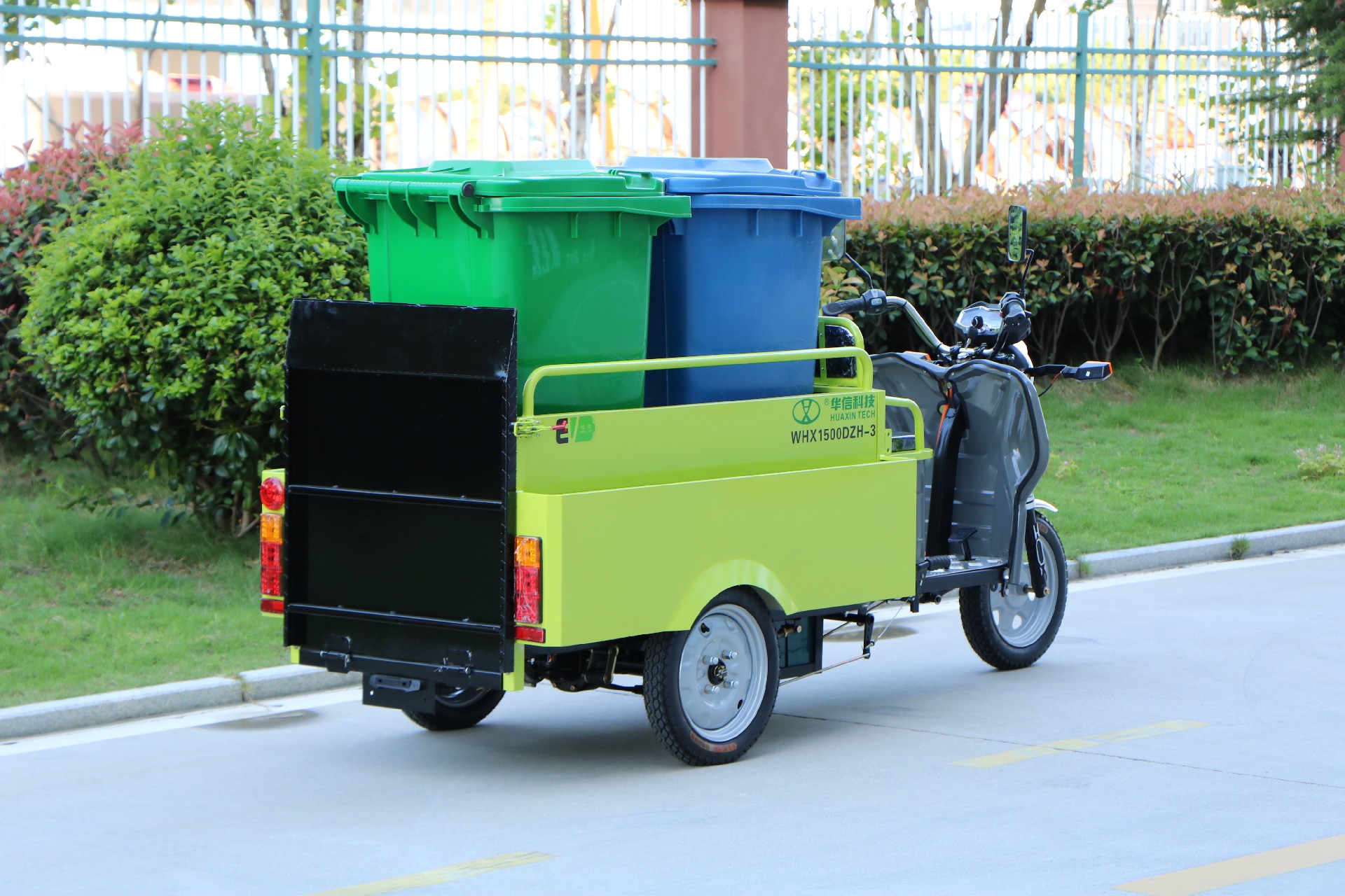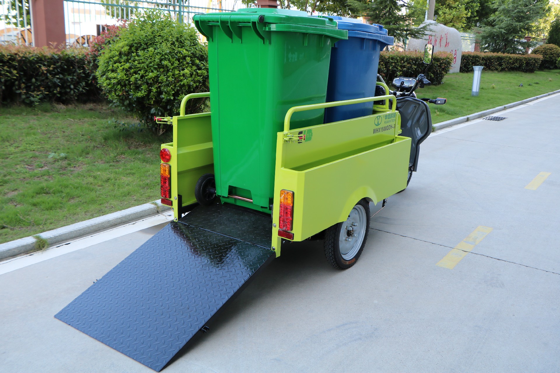 (7)垃圾箱箱體容量為450升,可裝載兩個常規(guī)尺寸垃圾桶,箱體與車架安裝方式為裝配,尾門可呈一定角度放于地面,便于垃圾桶轉(zhuǎn)運;