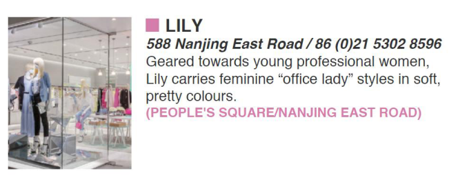LILY selected for the US version of the Shanghai city guide.